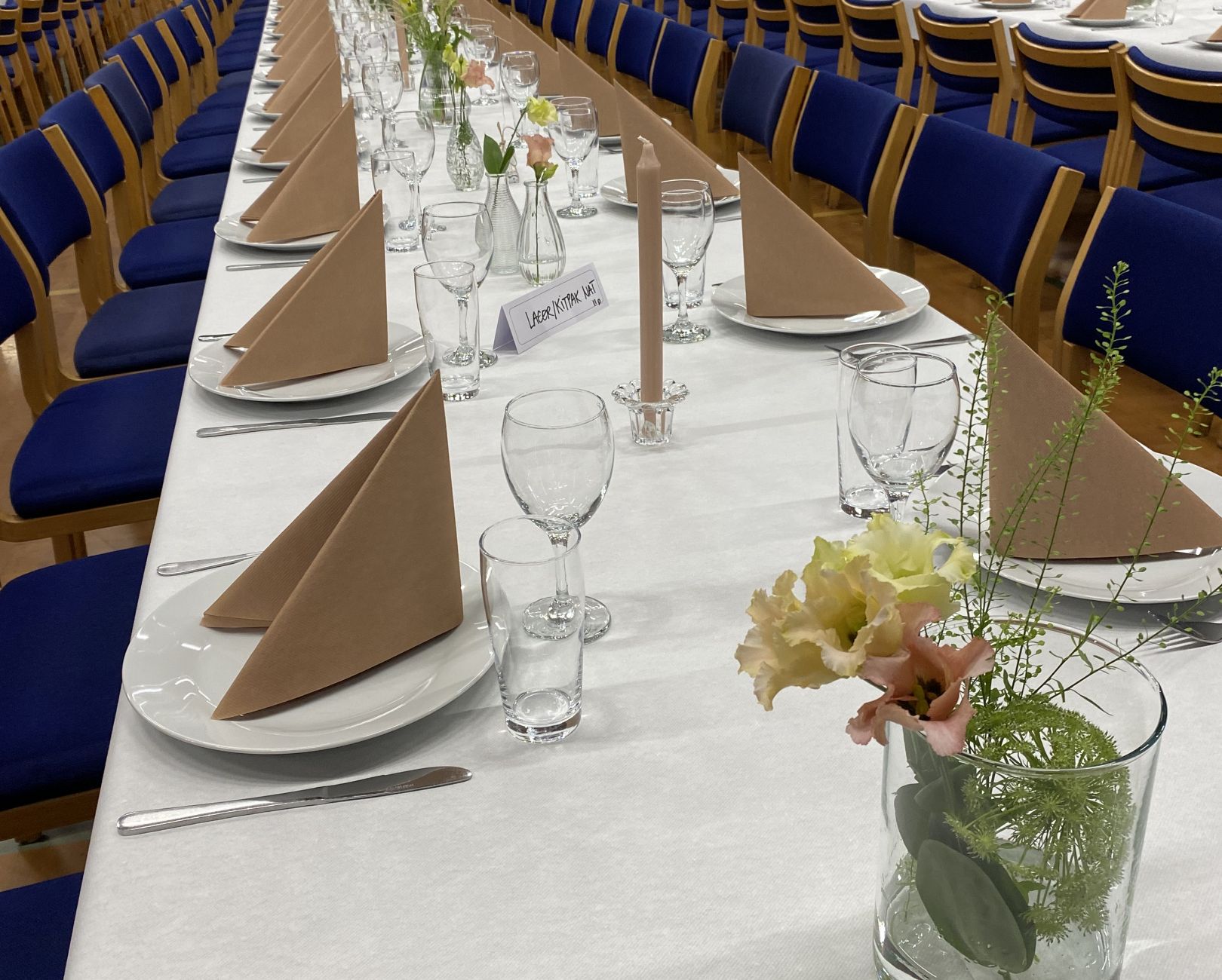 - Service, fade, kasser etc. fra kok eller cateringfirma tilbageleveres (Kan stilles i baglokale og afhentes mandag formiddag efter festen)