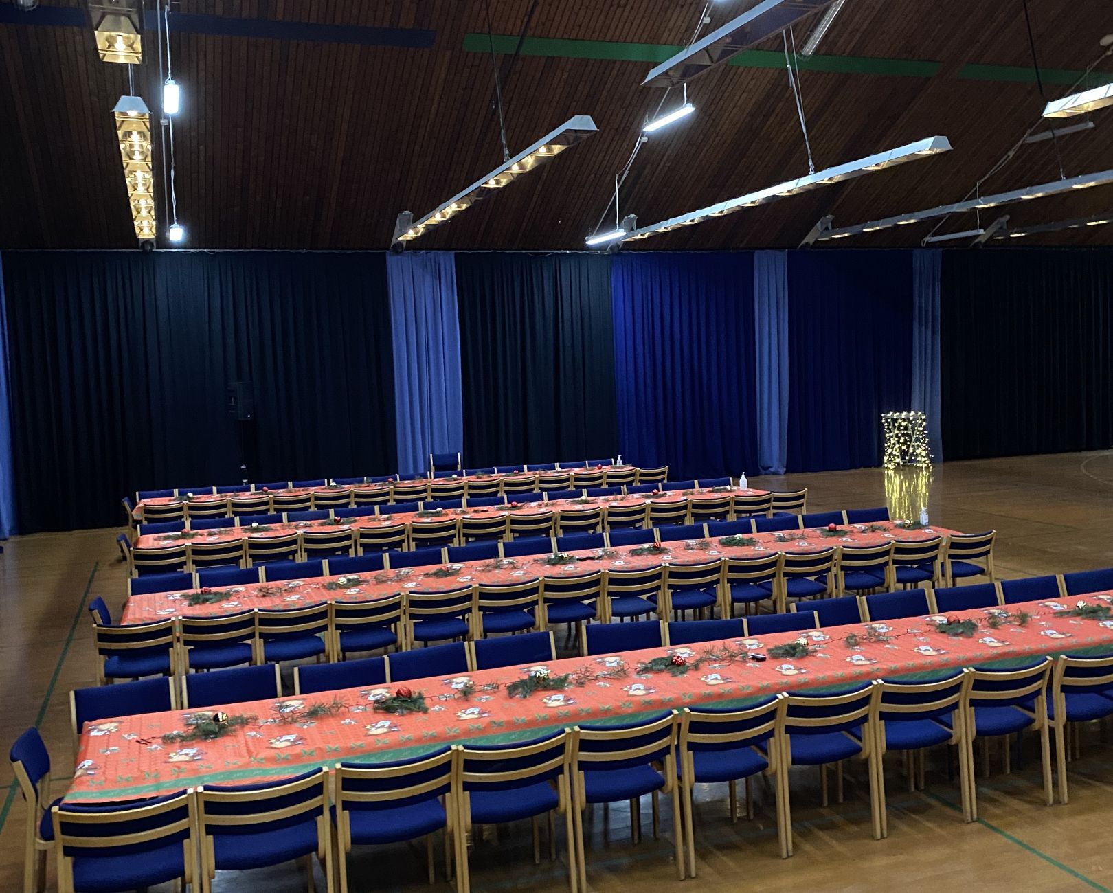Vores hal er ca. 800 m2. Der kan dækkes op til 500 gæster. Hallen kan opdeles alt efter antal personer. Når du lejer hallen, følger kantinen med. Der er adgang til toiletter samt anrettekøkken. Der er mulighed for adgang med kørestol og rollator. Parkering er udenfor døren.